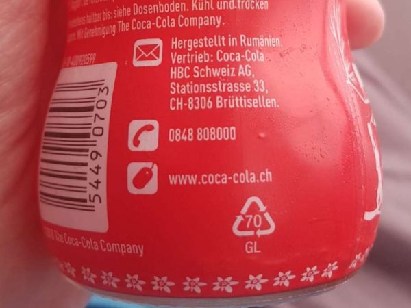 O sticlă de Coca-Cola cu motive tipic elvețiene, adică cu Heidi, flori de colț, munți, capre, vaci și pajiști alpine,...