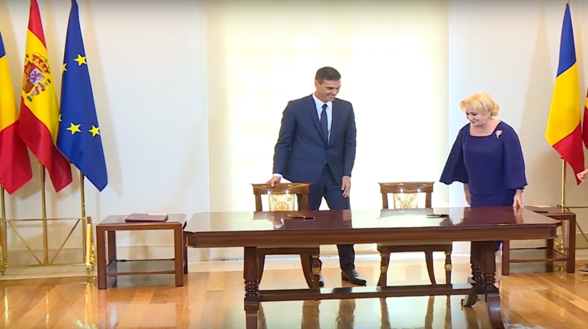 Singurul moment stânjenitor al întregii întrevederi a fost provocat chiar de către Pedro Sanchez. Acesta i-a arătat Vioricăi Dăncilă scaunul greșit pe care să se așeze. Unul dintre miniștri spanioli a corectat repede eroarea iar Pedro Sanchez și-a cerut scuze, vizibil stânjenit de moment.