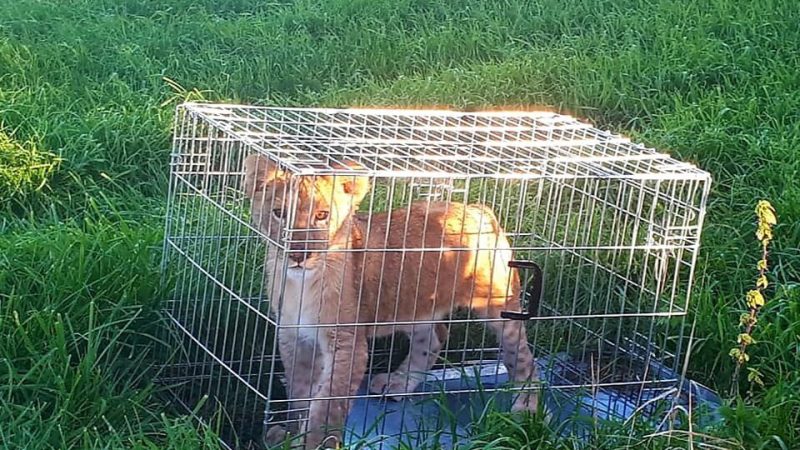 După ce veterinarul a spus că totul e în regulă, polițiștii au băgat puiul, cu tot cu cușcă, în mașină și l-au dus la un centru specializat care se ocupă de îngrijirea leilor. Nici măcar nu a fost nevoie de tranchilizare. Doctorul a spus, pentru presa locală, că mica felină s-ar fi putut aflat până acum în grija unei grupări de traficanți de animale exotice, dar că acum s-a făcut prea mare ca să fie vândută.
