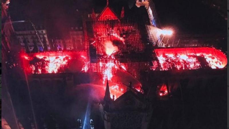 Smoke and flames rise during a fire at the landmark Notre-Dame Cathedral in central Paris on April 15, 2019, potentially involving renovation works being carried out at the site, the fire service said. (Photo by FRANCOIS GUILLOT / AFP) (Photo credit should read FRANCOIS GUILLOT/AFP/Getty Images)