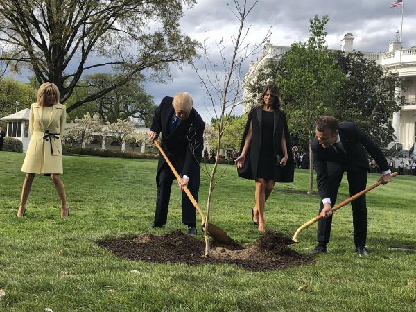 Copacul prieteniei, plantat de Emmanuel Macron și Donald Trump pe peluza de sud a Casei Albe, ca simbol al prieteniei...