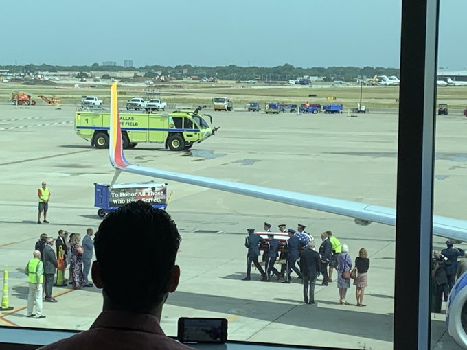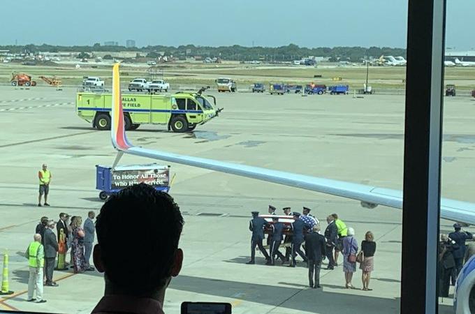 Pasagerii de pe aeroportul din Dallas, unul dintre cele mai aglomerate din Statele Unite, s-au oprit pentru câteva momente să se uite pe geam și să aducă un ultim omagiu eroului care s-a întors, în sfârșit, acasă. Un jurnalist aflat întâmplător în trecepe pe acolo a spus că întregul terminal a amuțit deodată. Angajații Southwest Airlines, care a operat zborul ce i-a repatriat sicriul militarului, au împărțit steaguri toturor celor prezenți.