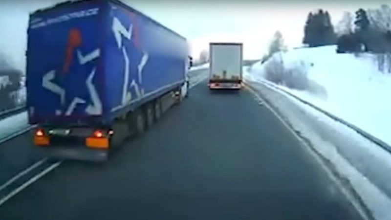 După cum se vede în video şoferul unui camion a intrat într-o depăşire la limită în timp ce pe contrasens se deplasa legal un autocar cu elevi. Impactul a fost evitat la limită şi se poate spune că a fost un miracol faptul că nu a murit nimeni. Evenimentul a avut loc pe drumul național B12 din Germania şi şoferul camionului era cetăţean ceh.