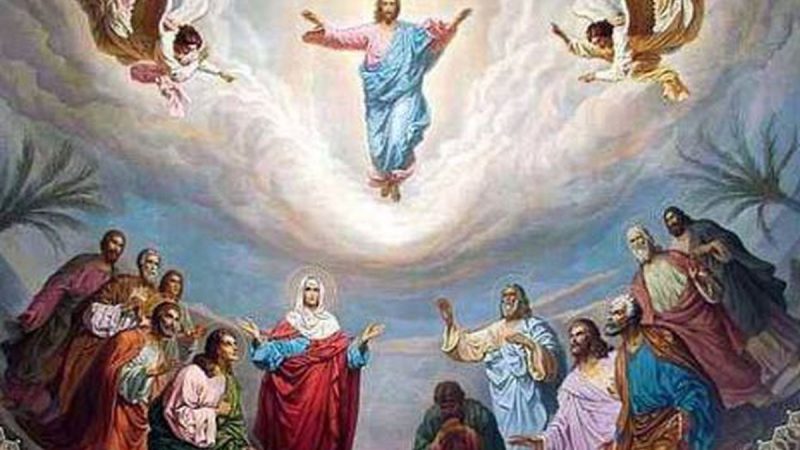 Hristos S-a înălţat la cer de pe Muntele Măslinilor, în văzul Apostolilor şi a doi îngeri, după 40 de zile de la moartea sa pe Cruce. Îngerii le-au vorbit ucenicilor despre a doua venire a lui Hristos, pentru ca aceştia să nu se lase copleşiti de durerea despărţirii.