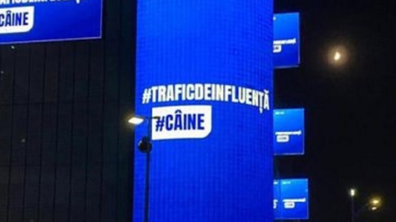 #Câine și #Trafic de influență, era mesajul scris.