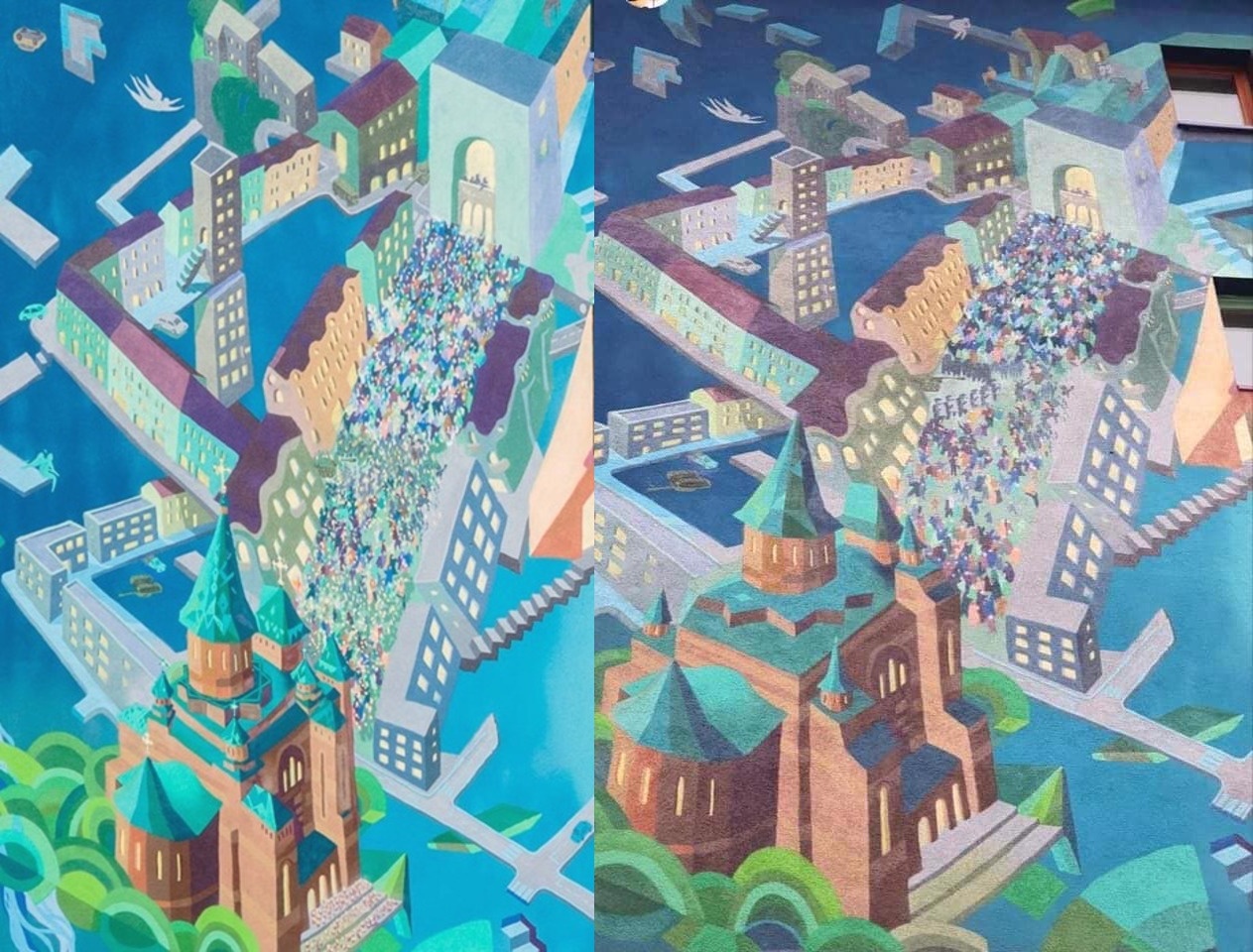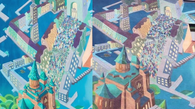 Acuzați că sunt NEOMARXIȘTI, au repus turlele Catedralei din Timișoara, lipsă din pictura murală!