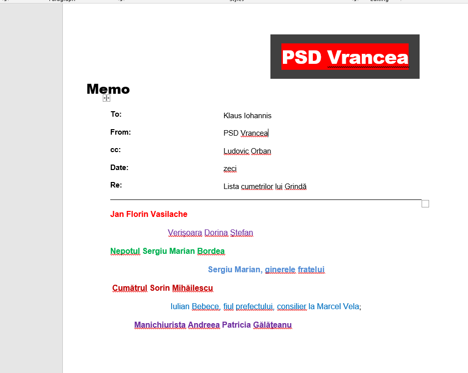 Prima listă a cumetrilor lui Ion Grindă Ștefan a ajuns la Klaus Iohannis