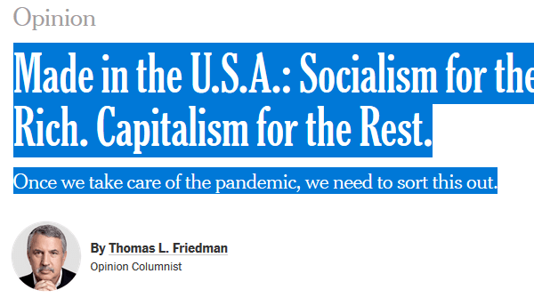 Într-un editorial pe tema socialism vs capitalism, Thomas L. Friedmnan, din ediția de azi a New York Times, îl citează...