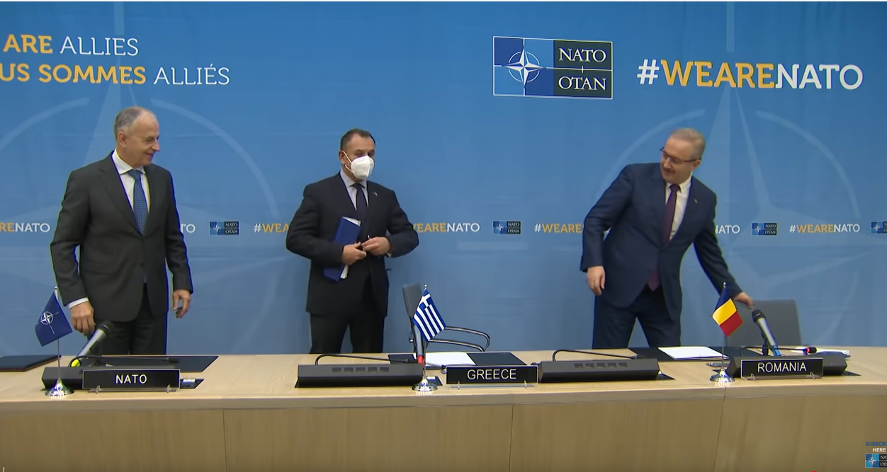 Cu ocazia reuniunii miniştrilor apărării din ţările alianţei, la Bruxelles a avut loc o ceremonie de semnare la care au participat secretarul general adjunct al NATO, Mircea Geoană, ministrul apărării din Grecia – lidera ABDM – Nikolaos Panagiotopoulos şi Vasile Dîncu, ministrul român al apărării.