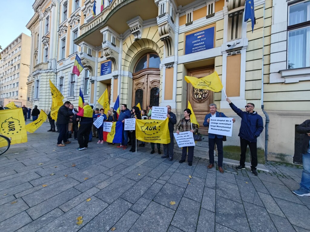 Ieri, AUR a organizat la Cluj Napoca un miting de protest împotriva lui Emil Boc, care a facilitat unei consilere a unui europarlamentar liberal cumpărarea cu 20.000 de euro a unui apartament de la ANL, instituție care acordă ajutor tinerilor nevoiași.