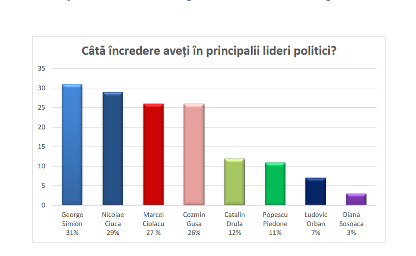 Cosmin Gușă, propunerea lui George Simion pentru candidatura la Primăria Capitalei, pare a fi viabilă, din punct de vedere electoral. Ultimul sondaj realizat de Insomar evidențiază poziția a treia în încrederea bucureștenilor, cu 26 %, după George Simion – 31%, Nicolae Ciucă – 29% și Marcel Ciolacu – 27%. Cristian Popescu – Piedone are doar 11%.