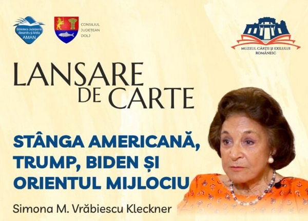 Noua carte a Simonei Vrăbiescu Kleckner, Stânga americană, Trump, Biden și Orientul Mijlociu, se va lansa mâine, 27 septembrie 2024,...