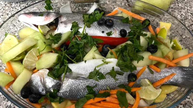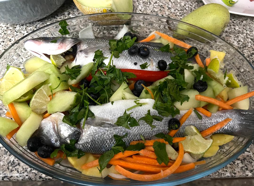 Biban de mare cu fructe și legume