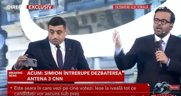 Într-o scenetă tipic de campanie electorală, George Simion dă buzna în emisiunea lui Mihai Gâdea. Amândoi se bat pentru microfon. Candidatul AUR e live pe tik tok. Moderatorul se dă ofensat: “Aici e CNN, nu Rusia today!” Liderului suveranist nu i se taie accesul la microfon și nu este dat afară. Urmărindu-i reacțiile, pare că așa zisele întrebări de atac ale celor din platou îi erau convenabile. Așa cum și lui Ciolacu îi convine să joace finala cu el, nu cu Nicolae Ciucă. Se zice că sceneta a intrat pe “comanda PSD.”