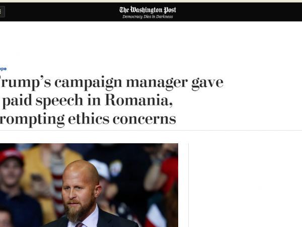 “DIRECTORUL de campanie a lui Trump a ţinut un discurs plătit în România, fapt care a determinat preocupări legate de...