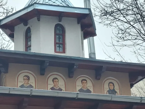 Portretele lui Radu Gyr, Valeriu Gafencu, Mircea Vulcănescu și Ilie Lăcătușu, recent pictate pe capela cu hramul „Martiri și Mărturisitori...